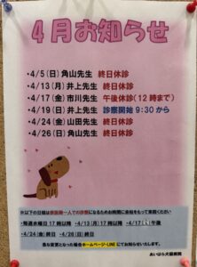 狂犬病予防接種やフィラリア検査シーズンとなり混雑が予想されます。
